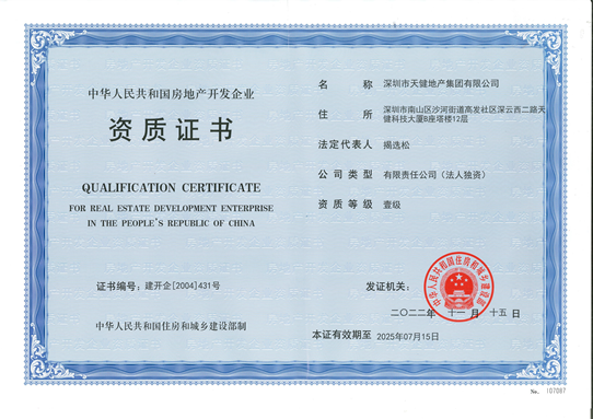 天健集團地產開發業務起步于1988年,所屬天健地產集團擁有房地產開發一級資質,是深圳市屬國企唯一一家具有自主施工能力的綜合性開發企業,年銷售額超100億元,獲“2022年廣東省房地產企業綜合競爭力前100名”。