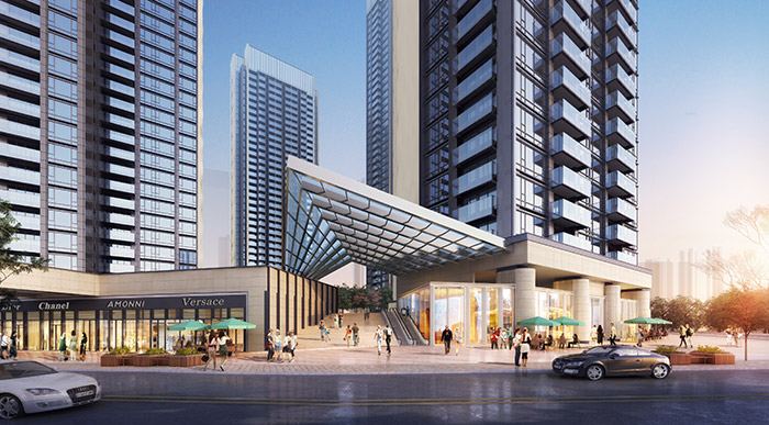 項目的規劃理念為:“中心區域,綠色環繞,純凈氛圍,藝術生活,泛會所”。一期項目開發用地31787.3㎡,建筑面積195410㎡,主要由8棟超高層塔樓組成。項目采用現代主義設計風格,經典現代立面,以鋁板和low-E玻璃為主構成。園區采用點板結合的空間布局,將傳統與現代相結合。