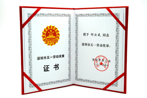 ▲ 何云武榮獲深圳市“五一勞動獎章”殊榮