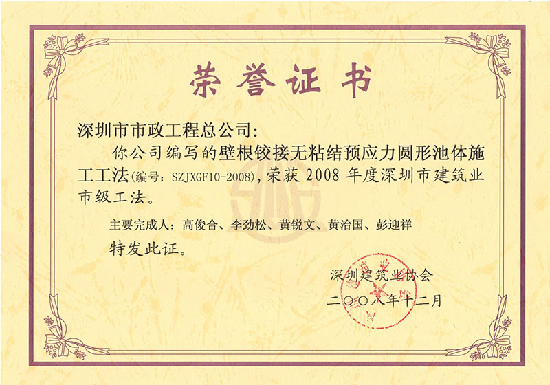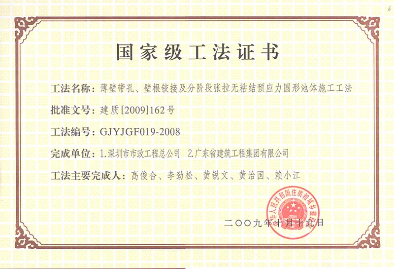 壁根鉸接無粘結預應力圓形池體施工工法(2008)