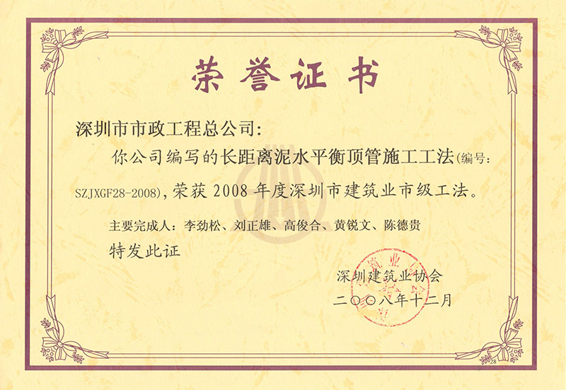 長距離泥水平衡頂管施工工法(2008)